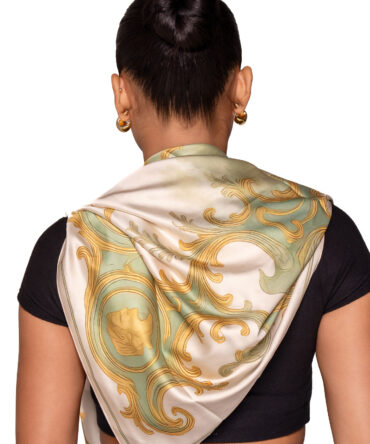 The Amalfi scarf showcases Belvoglio’s iconic, vibrantly colored motif in an elegant two-tone, double-sided design. Expertly crafted from high-quality satin silk twill and finished with hand-rolled edges, it is beautifully accented by a tonal Belvoglio signature band. Versatile and refined, it can be tied at the neck or styled as a headscarf to complete the Belvoglio luxury look.