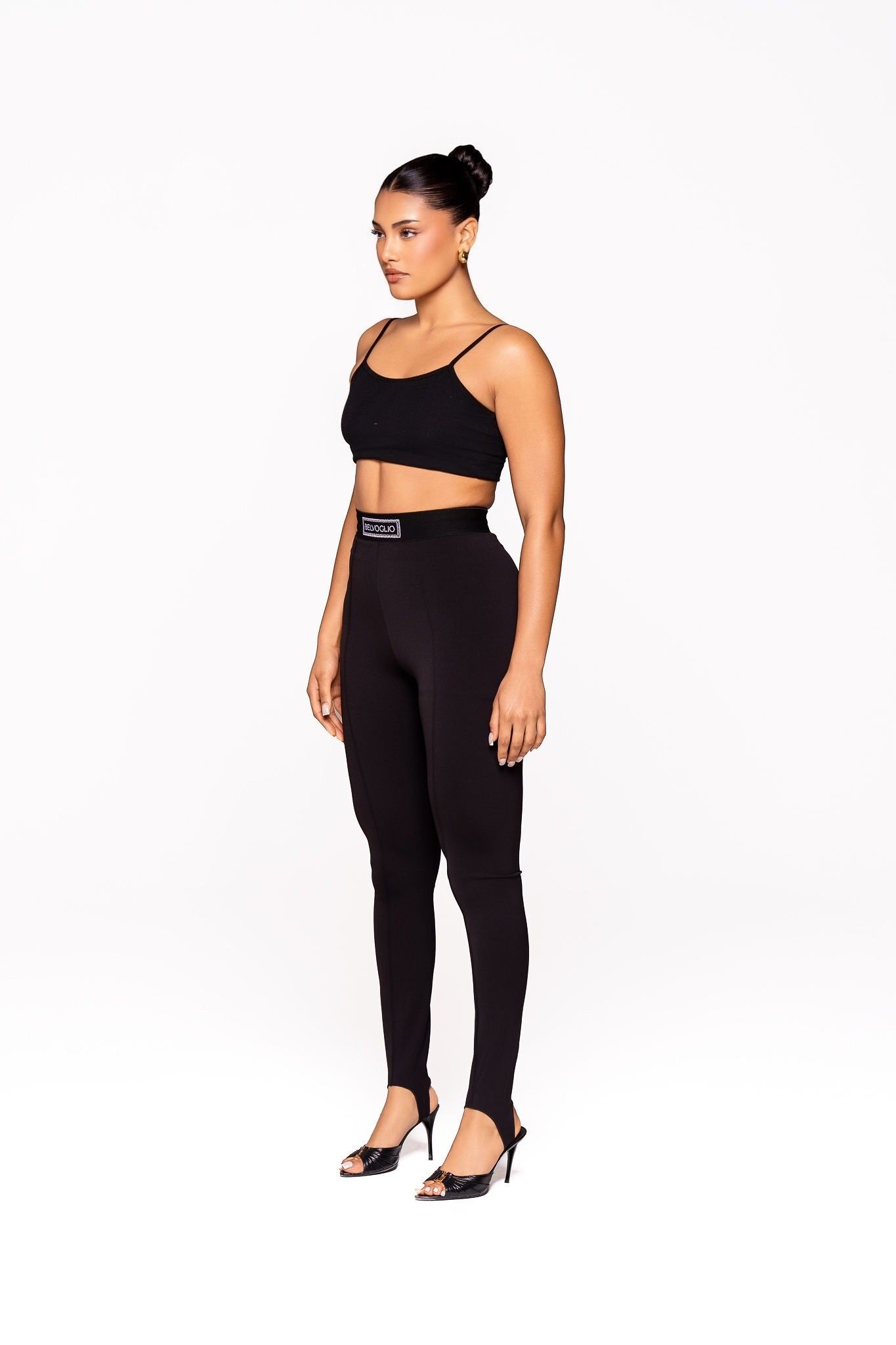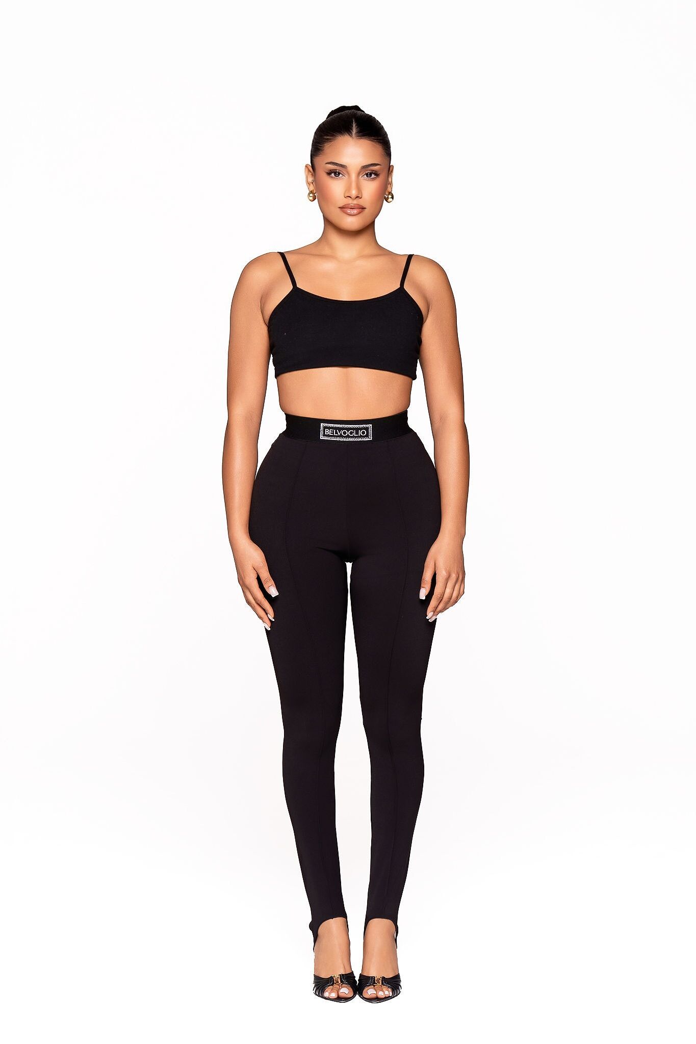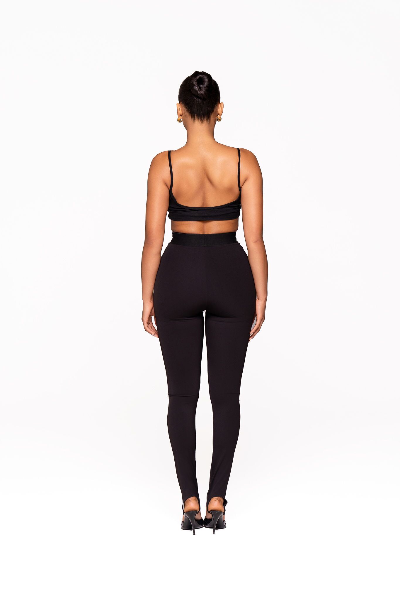 Our Stirrup Pants are the perfect blend of comfort, structure, and modern edge. Crafted from a premium stretch fabric, they offer a smooth, body-hugging fit that flatters from waist to ankle. Designed with a high-rise waistband for a scripted silhouette, these are made to move with you no pulling, bunching, or adjusting needed.